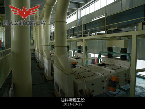 ...詳情介紹油料預處理是油脂加工過程中重要的一道工序,目的是改良油料的外形,以便快速有效的通過機榨或浸出制油。它通常包括以下一系列過程:對油料烘干、色選、破碎、軟化、去皮、擠壓膨化、軋坯、蒸炒和榨油等。主要設備:提升刮板、除塵器,分級篩、軟化塔、破碎機、風選器、軋胚機、膨化機、翻板冷卻器、蒸炒鍋等。